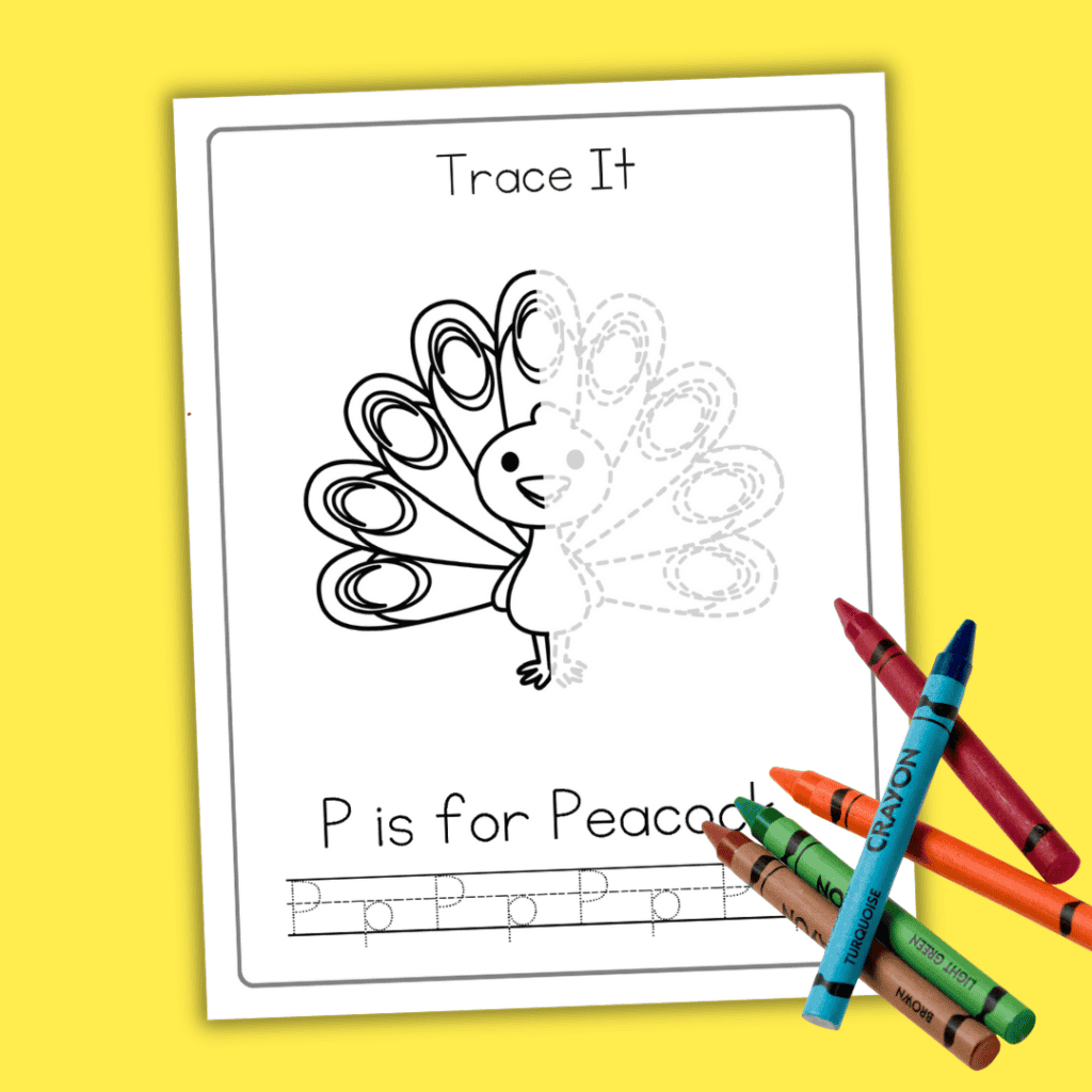 To build familiarity, you can point out items your child already knows that begin with the letter P, like panda, peacock, and pie.