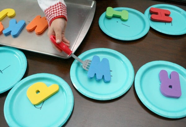 Using foam letters, your kids will flip for this ABC Cookies alphabet activity! The goal is to match each letter cookie to the correct plate.Â