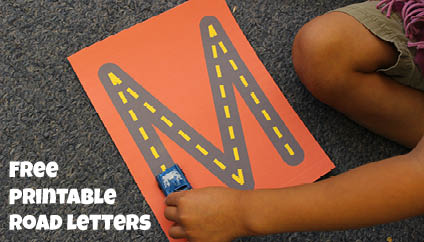 Your Hot Wheels loving kids will love practice letter formation and letter recognition with these free road letter printables. This is a great way for kids to work on gross motor skills, too, as they use the whole arm to drive over each letter.Â