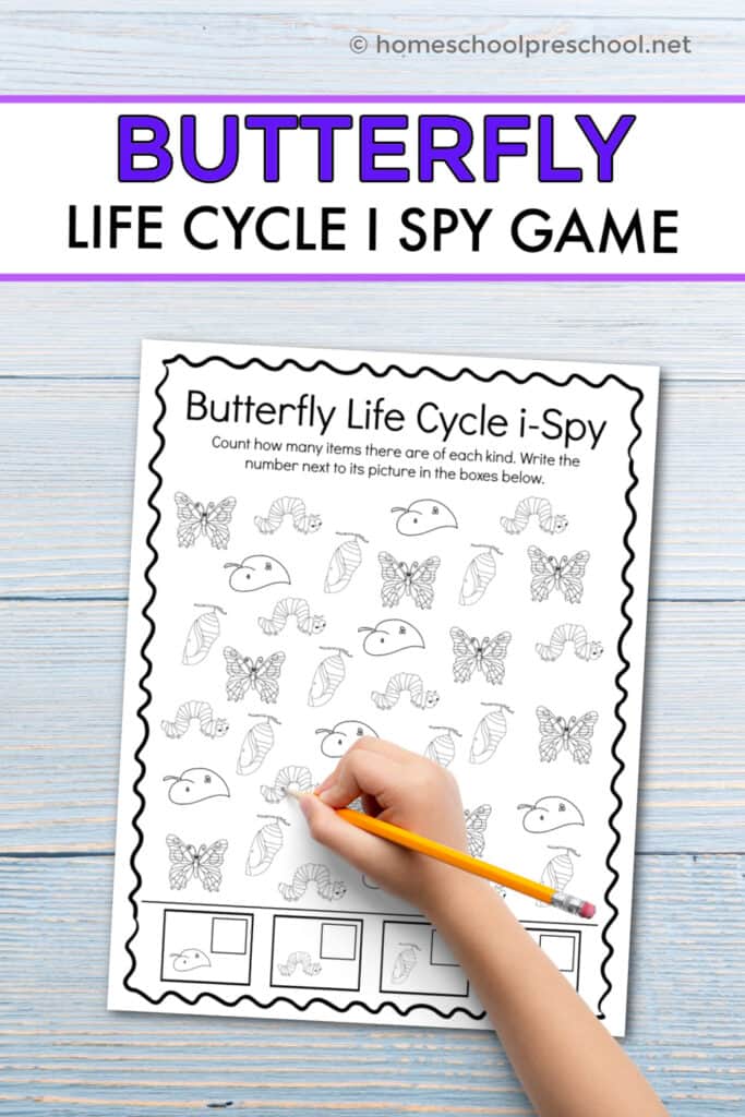Our free printable “Life Cycle of a Butterfly” I Spy game is a fun and educational activity that is perfect for preschool-aged children.