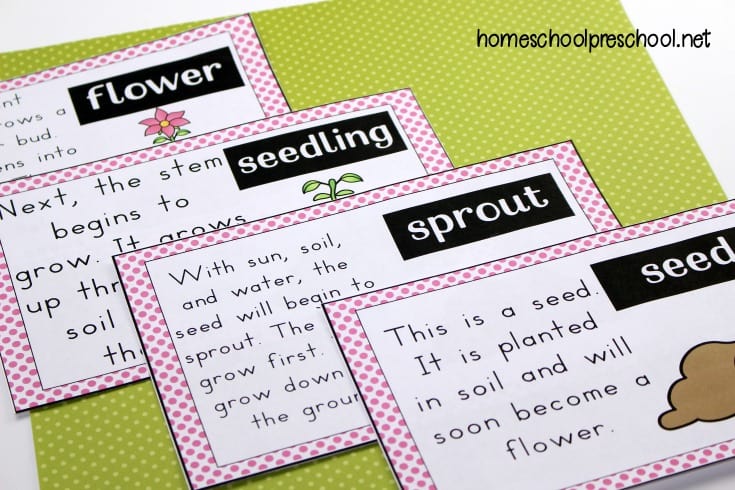 After reading a book about flowers, show your kids the life cycle poster. Talk about each of the stages shown.