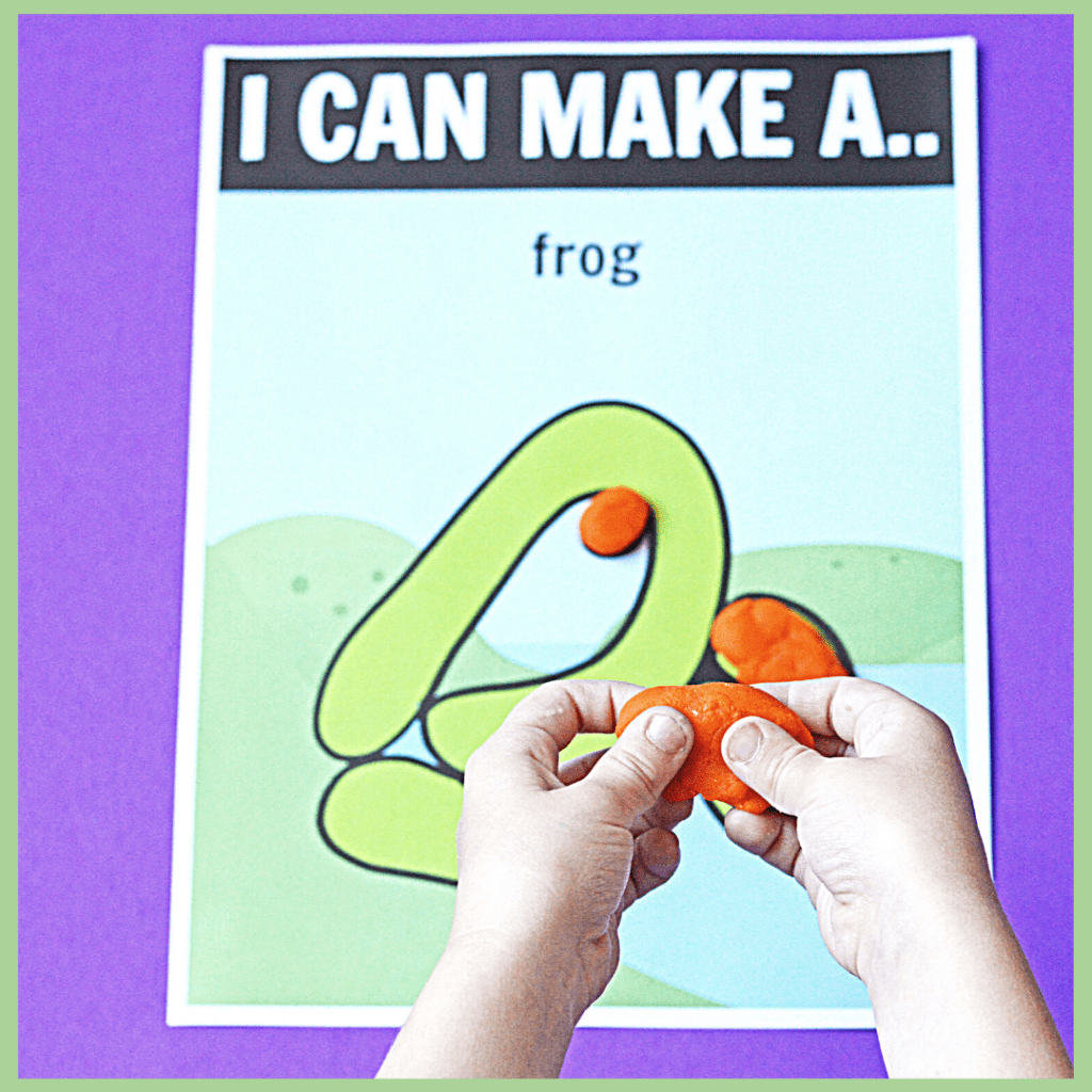 After you’ve taught the life cycle of a frog (be sure to check out my full life cycle pack), your kids can build each of the stages with playdough.