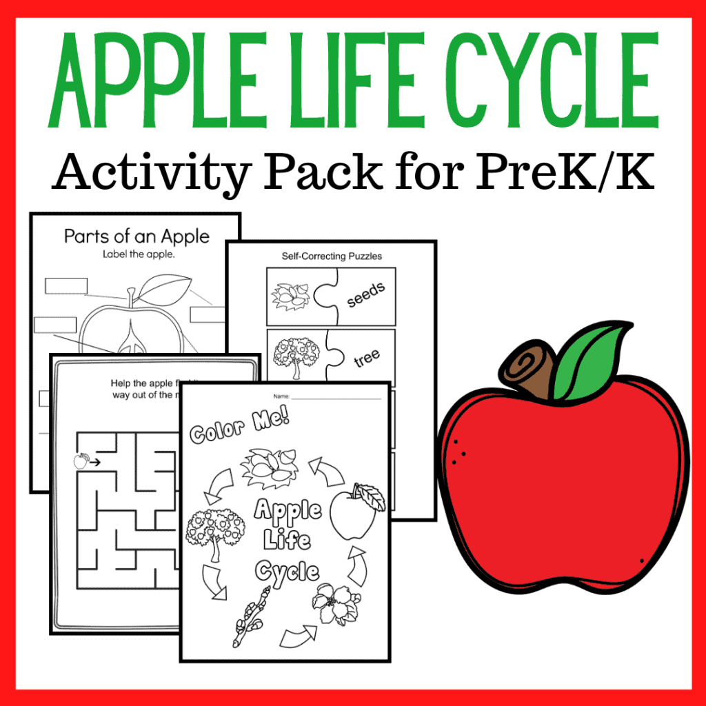This printable life cycle of an apple pack features seventeen engaging activities that are perfect for preschoolers, pre-k, and kindergarteners.