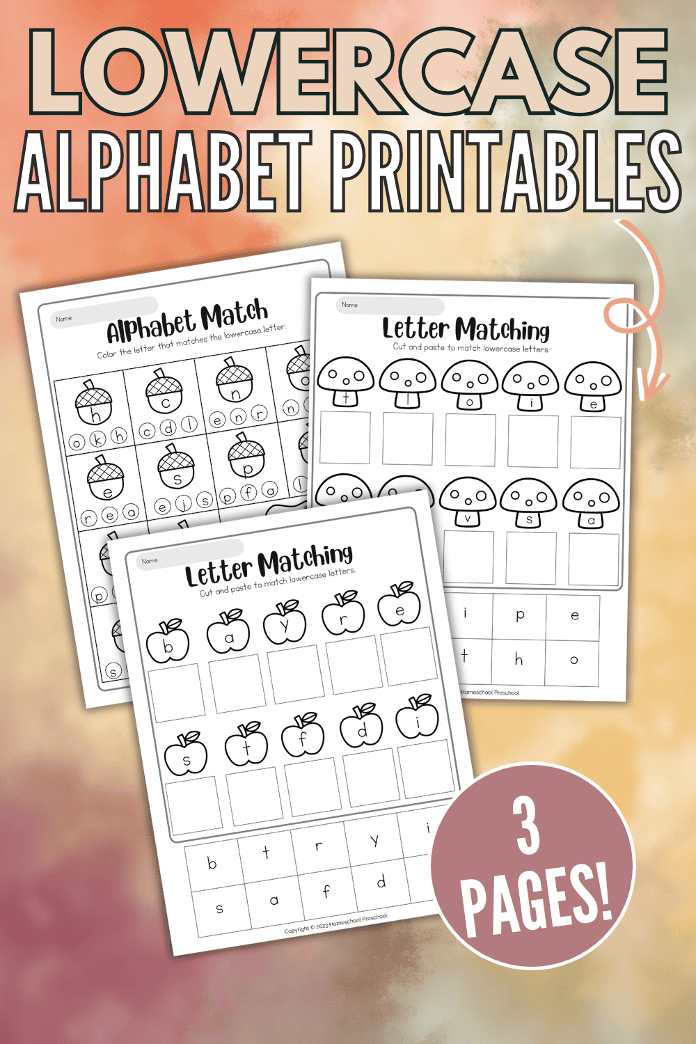 These free printable alphabet worksheets consist of two cut-and-paste pages and one color-the-match page. This hands-on activity encourages children to match lowercase letters to their matching counterparts, making the learning process interactive and enjoyable.