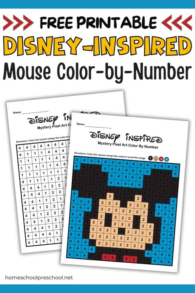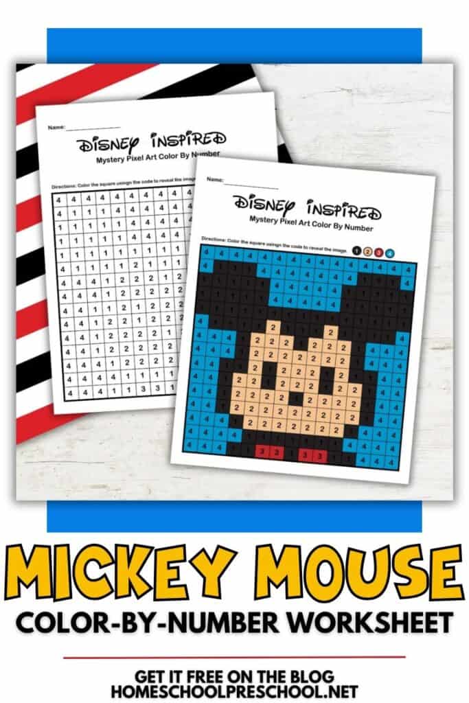 If you’re looking for a fun Mickey Mouse color-by-number printable to keep your preschooler busy and learning, you’re in luck! This easy color-by-number worksheet is great for practicing number recognition, fine motor skills, and color matching—all while revealing a fun surprise picture. Kids love watching the mystery picture come to life as they color each square.