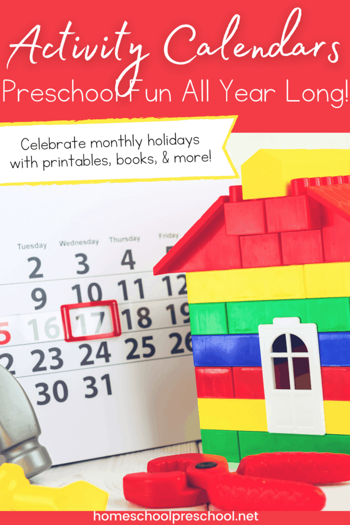 Each month, you can download a monthly activity calendar for preschool that will help you celebrate holidays all year long.