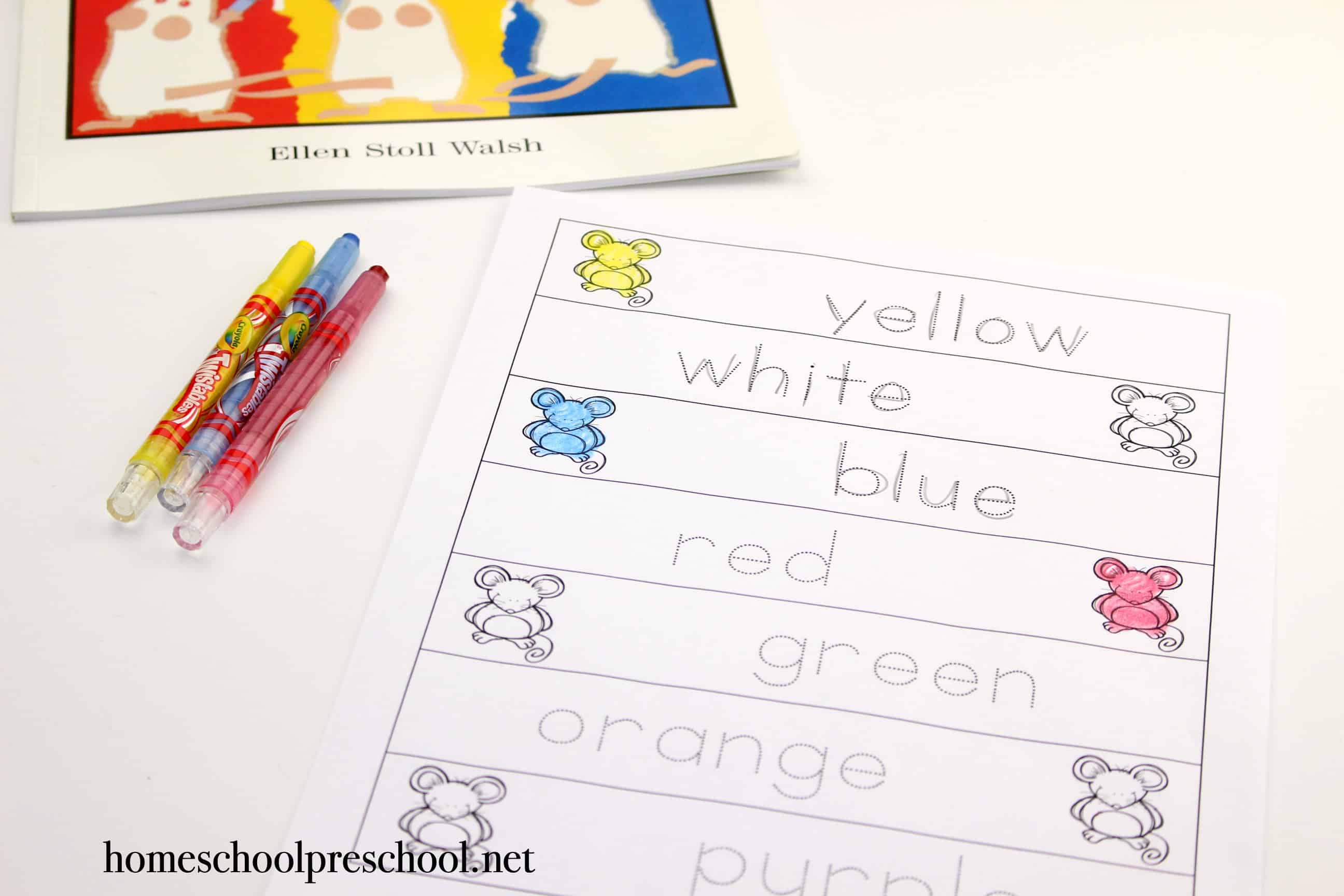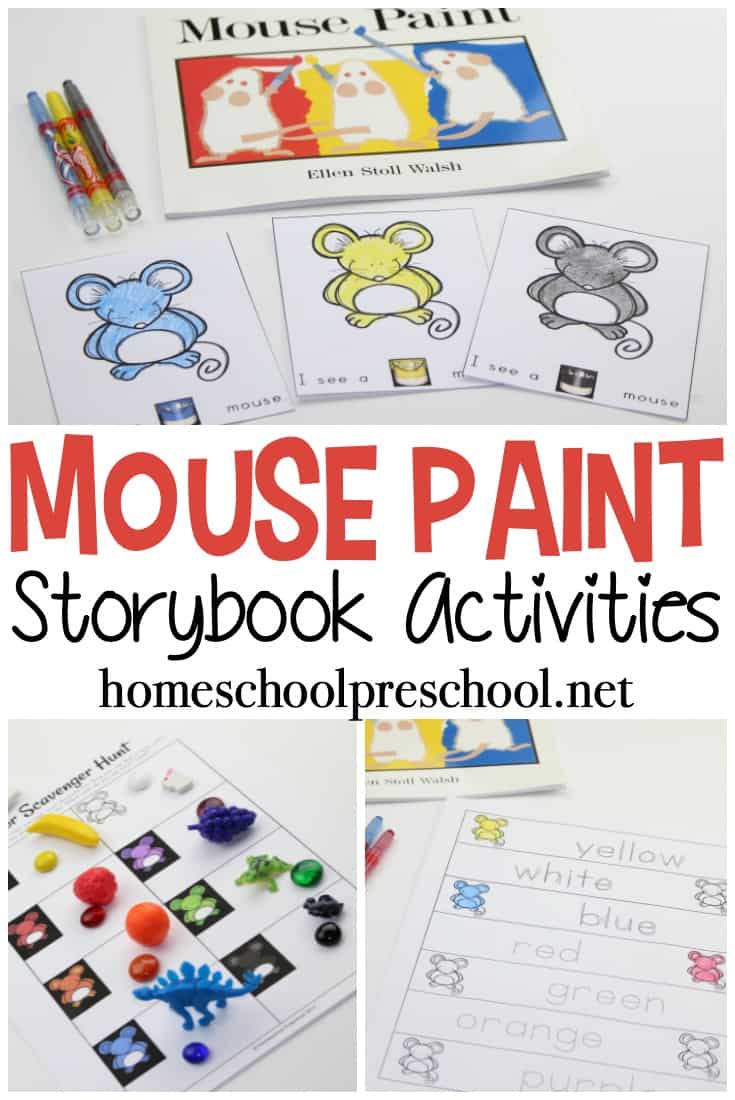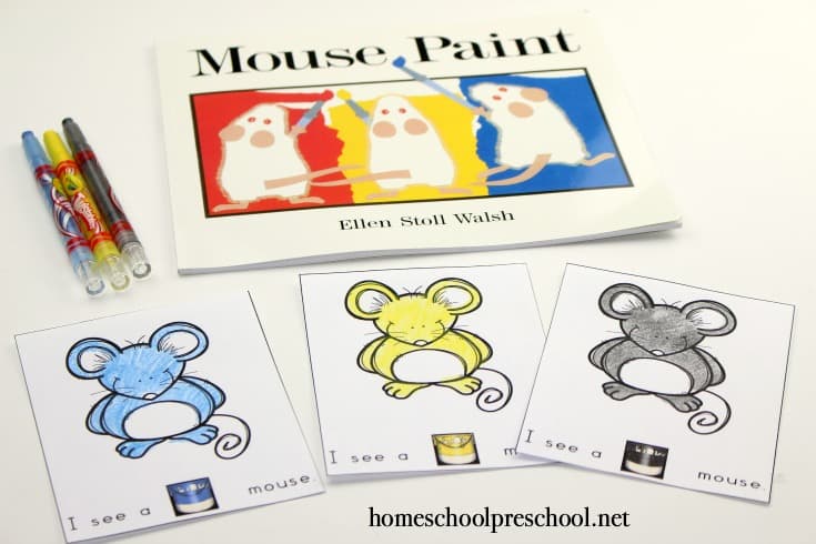 After reading the story with your children a few times, print out the Mouse Paint activities below and work through the worksheets and activities with your preschooler.