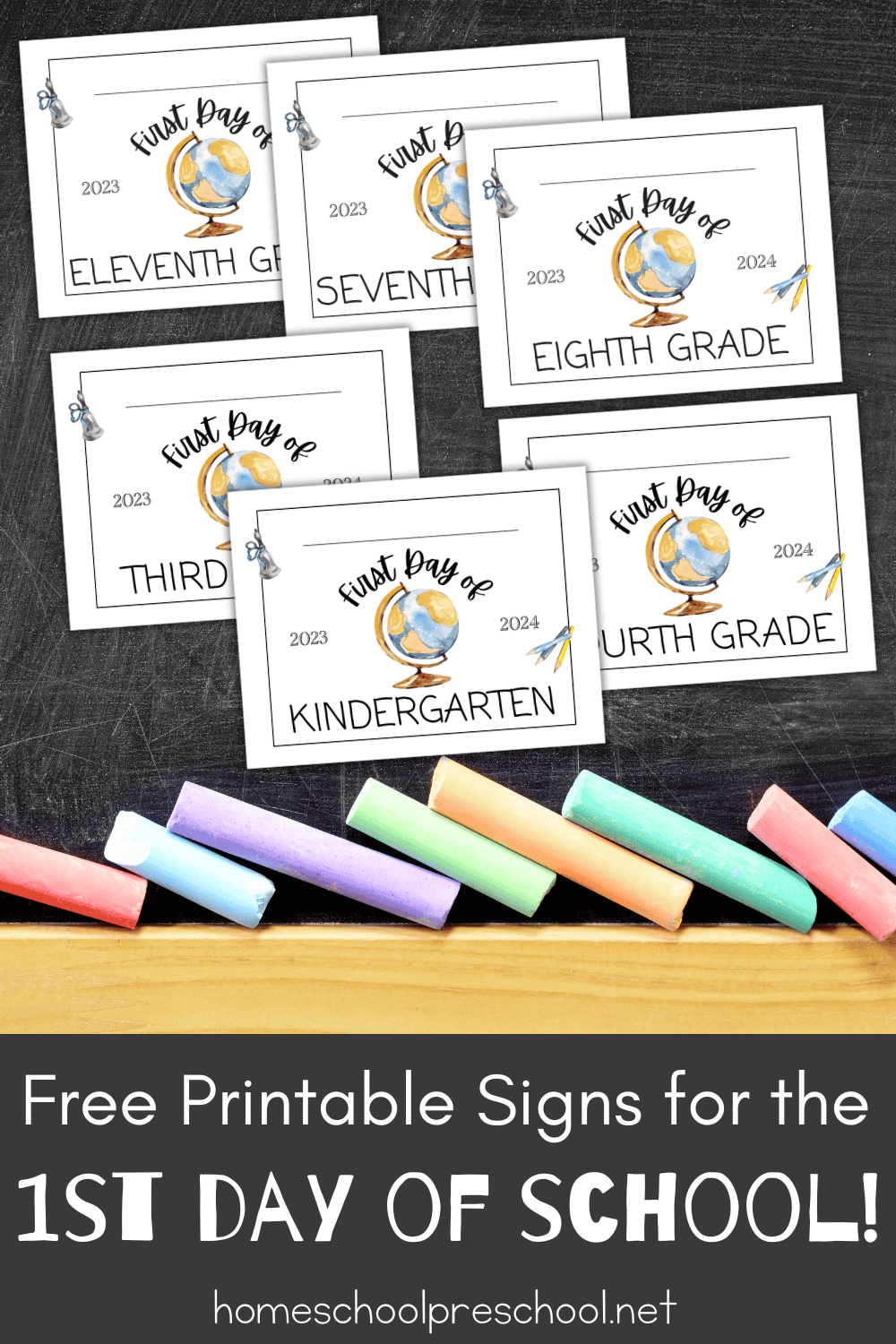 This printable pack includes 13 signs (preschool to 12th grade) to commemorate the start of the 2023-2024 school year.