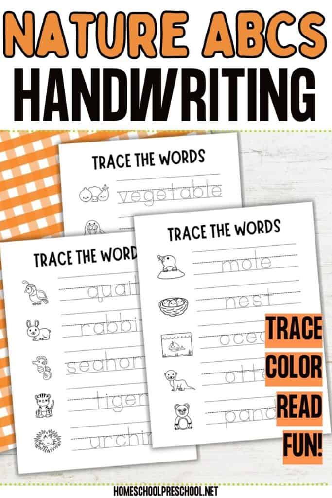 These nature alphabet worksheets are simple to prep and full of learning opportunities! Just print and go—each page invites children to trace nature-themed vocabulary words like bee, otter, or zinnia while building fine motor skills, letter recognition, and early handwriting confidence.