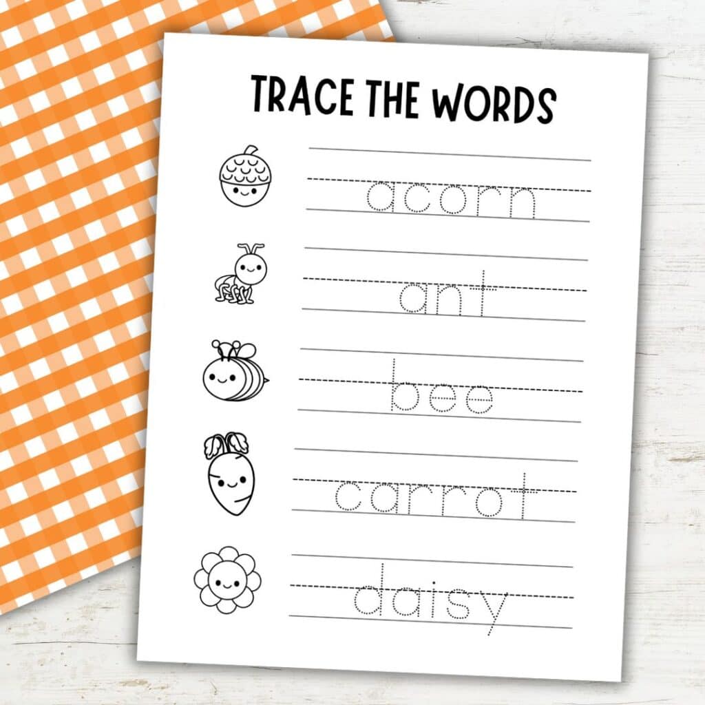 Encourage kids to color the cute images after tracing to reinforce the connection between the word and the object. These pages work beautifully as part of a letter-of-the-week routine, morning basket time, handwriting center, or even a quiet-time activity at home.