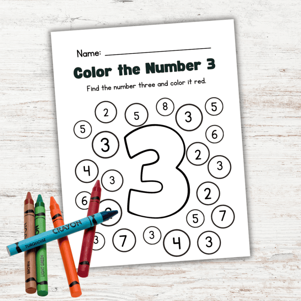 3. Encourage them to carefully scan the worksheet and color all the numbers ‘3’s they find.