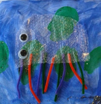 Inspired by the ocean and perfect for summer! Kids can make this adorable seahorse art project with colored paper and bubble wrap. Perfect to do alongside Mr. Seahorse by Eric Carle.