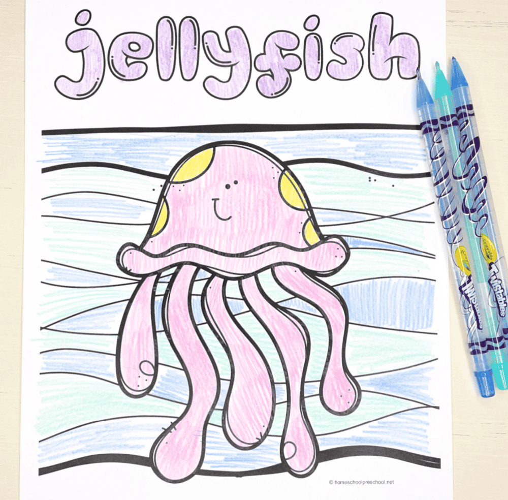 These ocean coloring pages are also a great way to help preschoolers build their fine motor skills. As they hold the crayon and color in the pages, they’ll be working on strengthening muscles in their hands, wrists, and fingers.