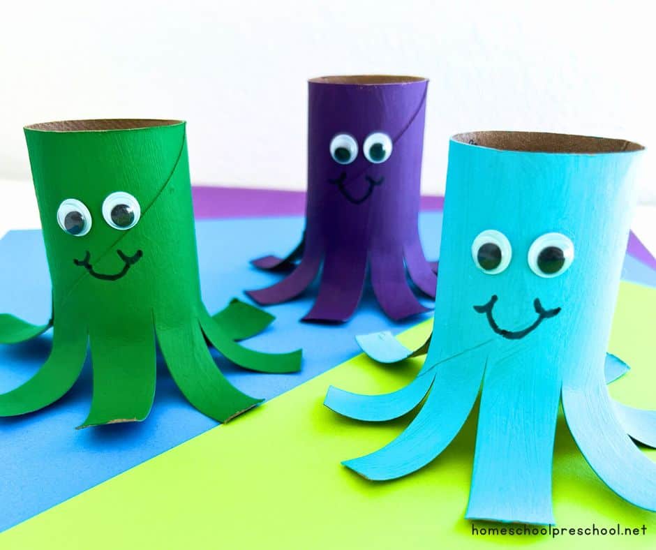Follow along to transform an ordinary toilet paper roll into a colorful, playful octopus that will bring a touch of underwater magic to your preschool crafts.