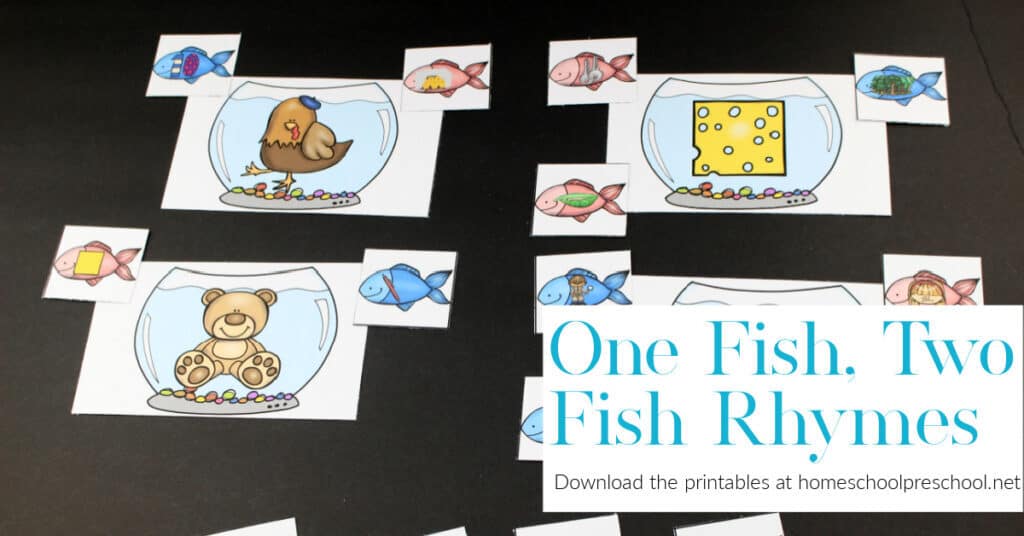 Have you read One Fish Two Fish Red Fish Blue Fish by Dr. Seuss? If so, you’ll love these One Fish Two Fish rhyming activities based on this popular kids book!