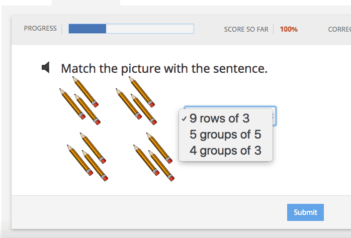 While the teacher will read the question aloud if your child clicks the “speaker” icon beside the question, you child may need your help the answers. You can see in the screenshot below that this particular question requires a bit of reading, and the teacher doesn’t read it aloud.