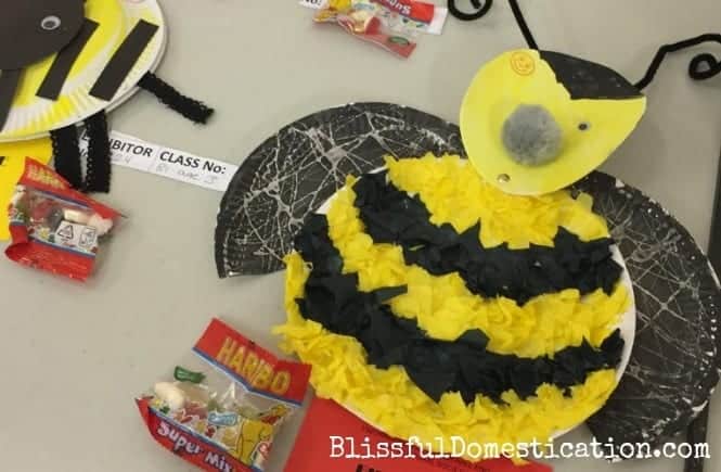 This paper plate bumble bee won first prize at a craft show for 5 and unders! The tissue paper stripes and moveable head make this one stand out from the crowd.