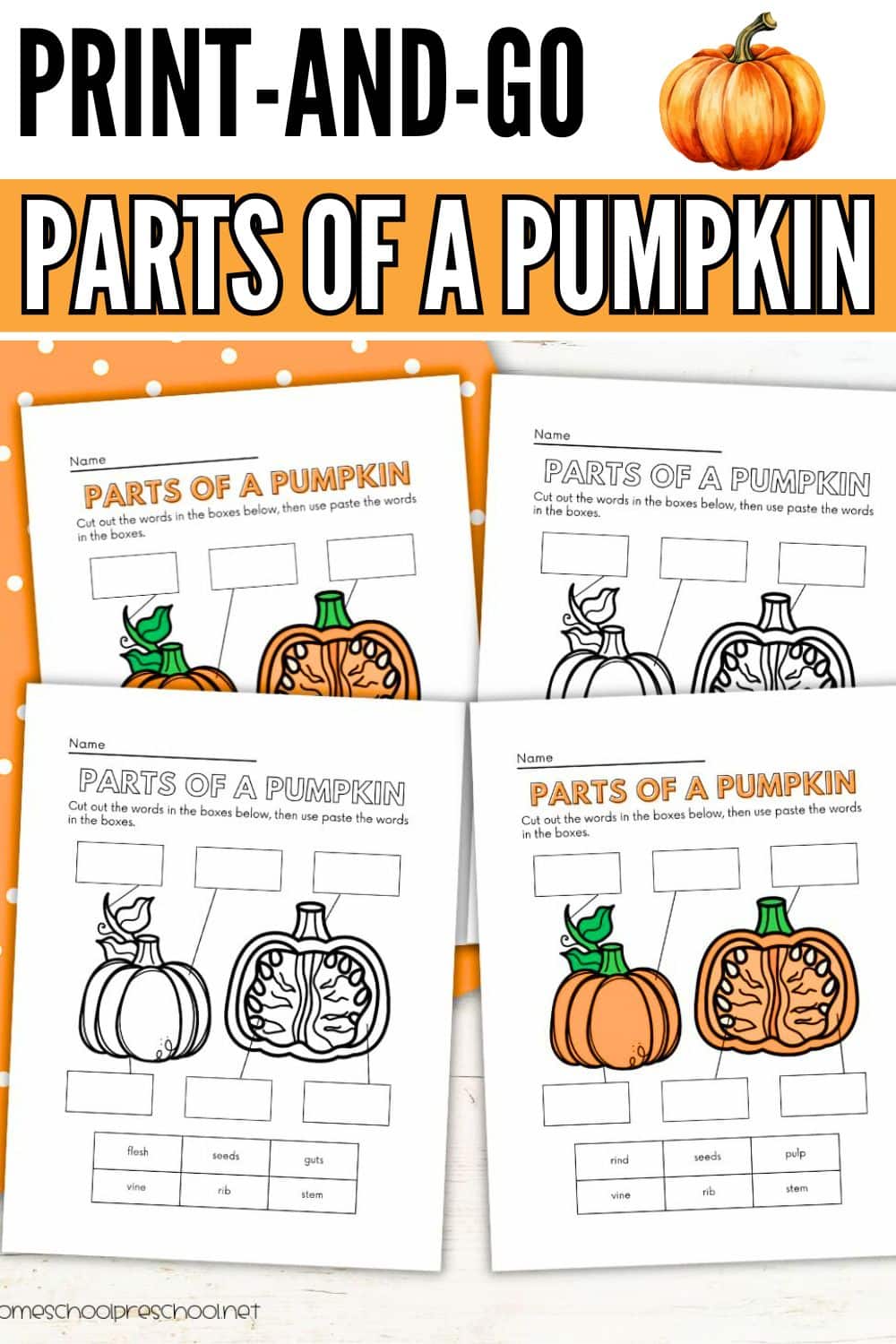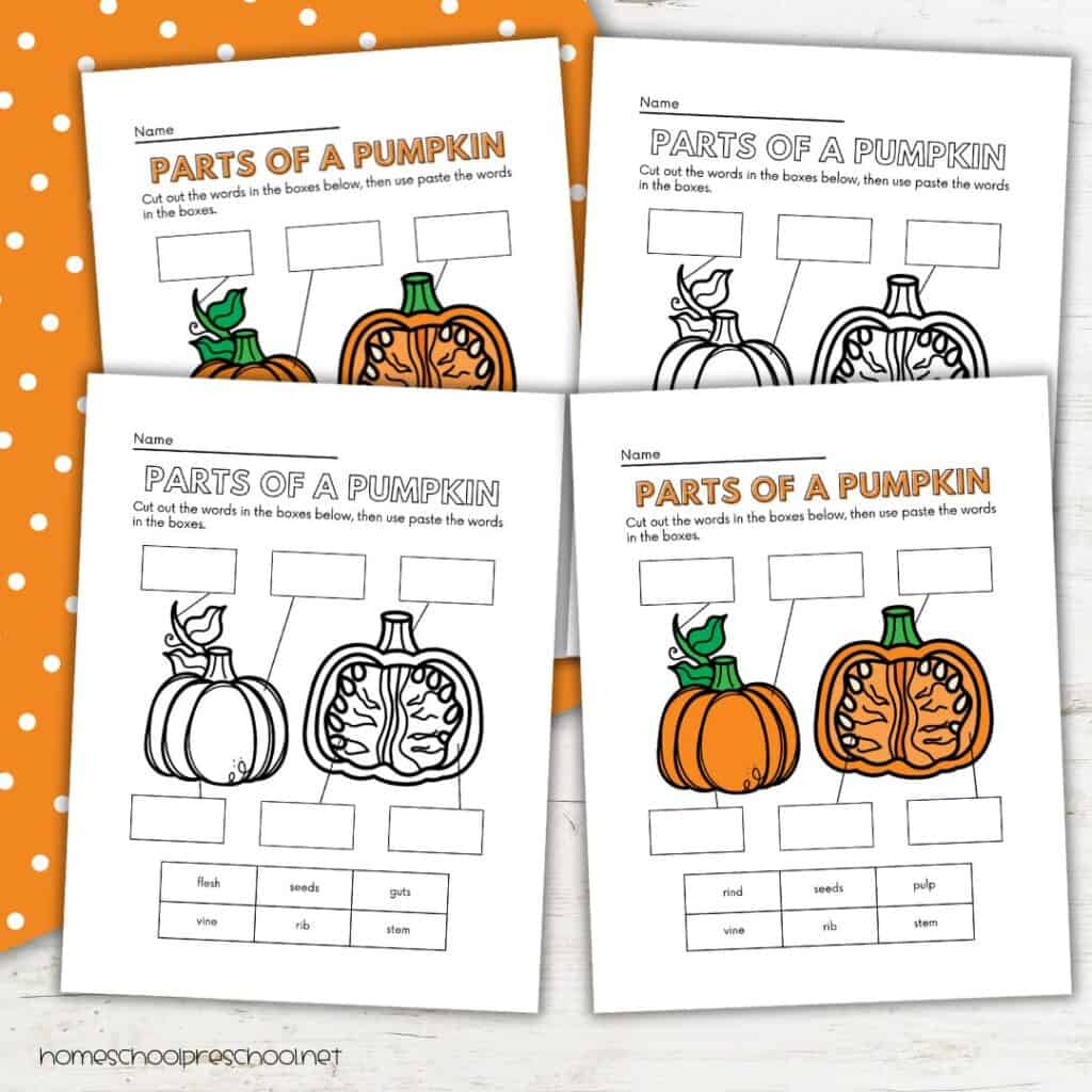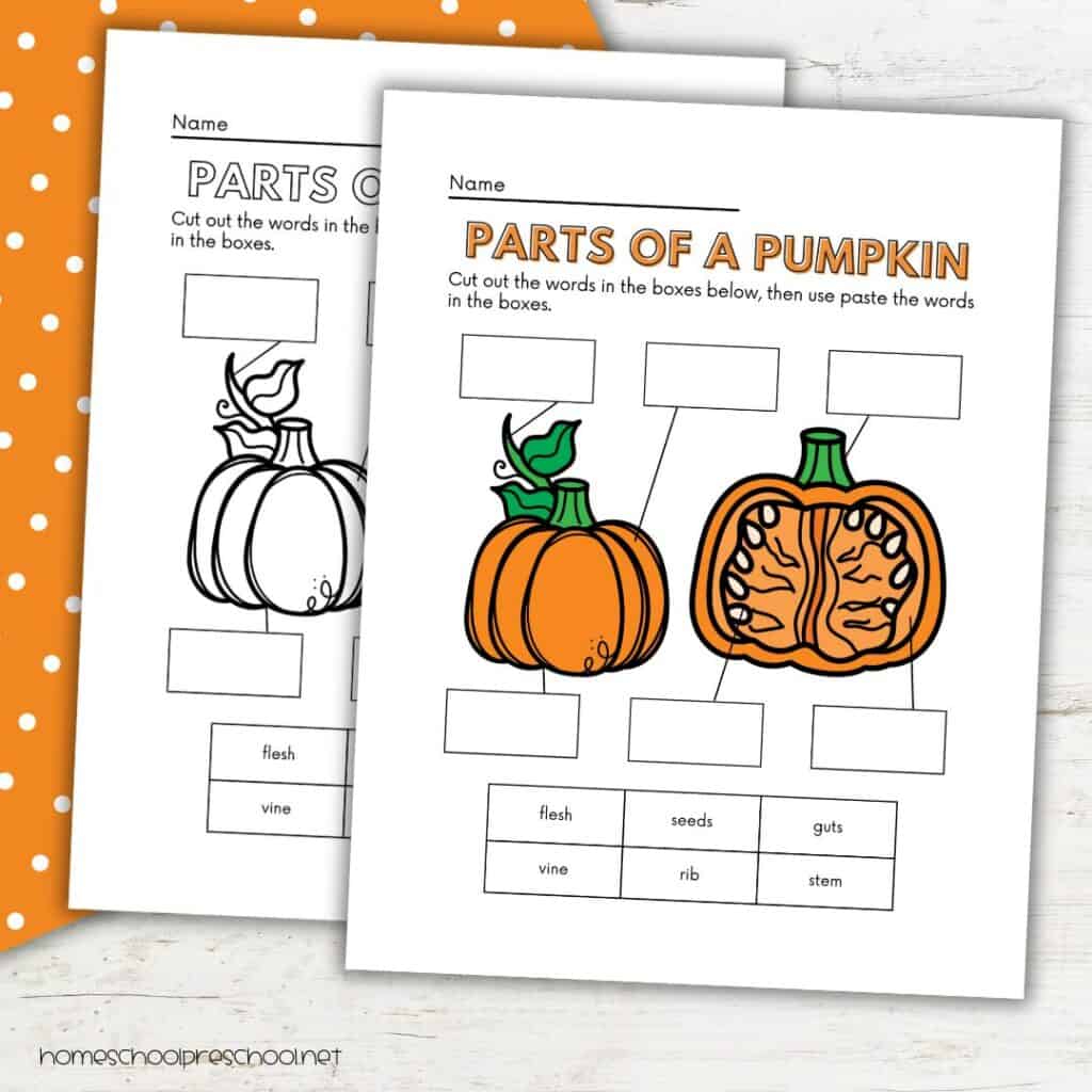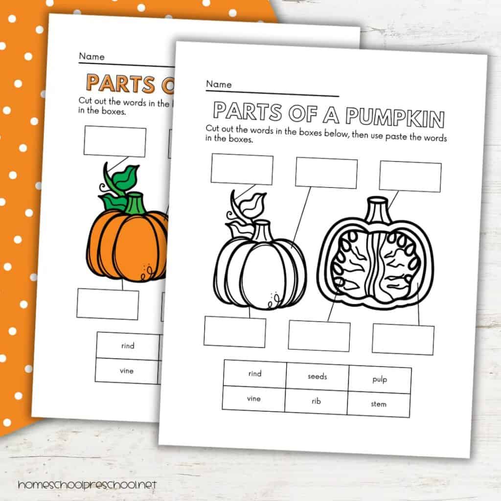 - Printable “Parts of a Pumpkin” worksheet