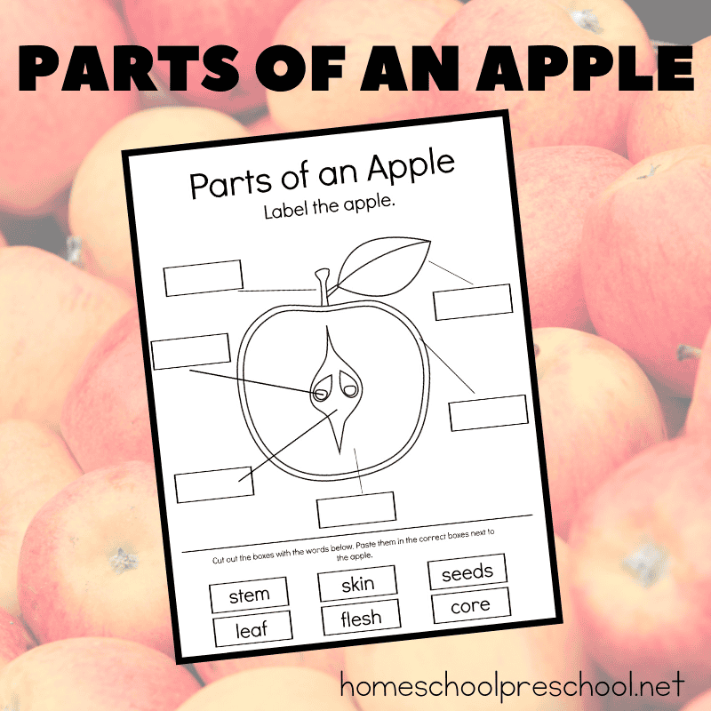 This parts of an apple worksheet is perfect for your life cycle, fruit, and general apple-themed preschool activities this autumn.