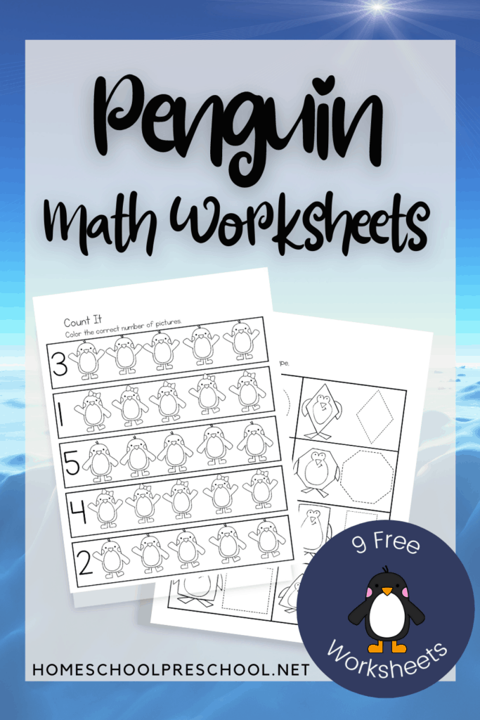 These penguin math worksheets are a great way to have preschoolers practice counting, color words, and shapes this winter.