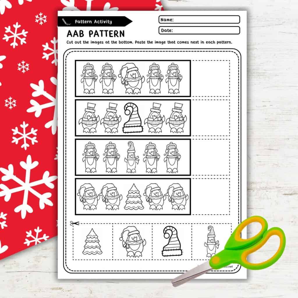 Plus, working with patterns improves attention to detail and fine motor skills, especially in hands-on activities like cutting and pasting. Most importantly, pattern practice lays the foundation for future learning in math, reading, and everyday problem-solving.