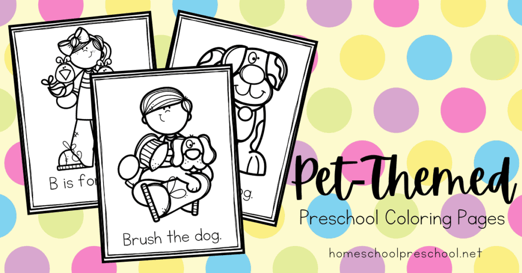 This free preschool printable includes a variety of pet-themed coloring pages. They’ll make a great addition to your upcoming preschool lesson plans.