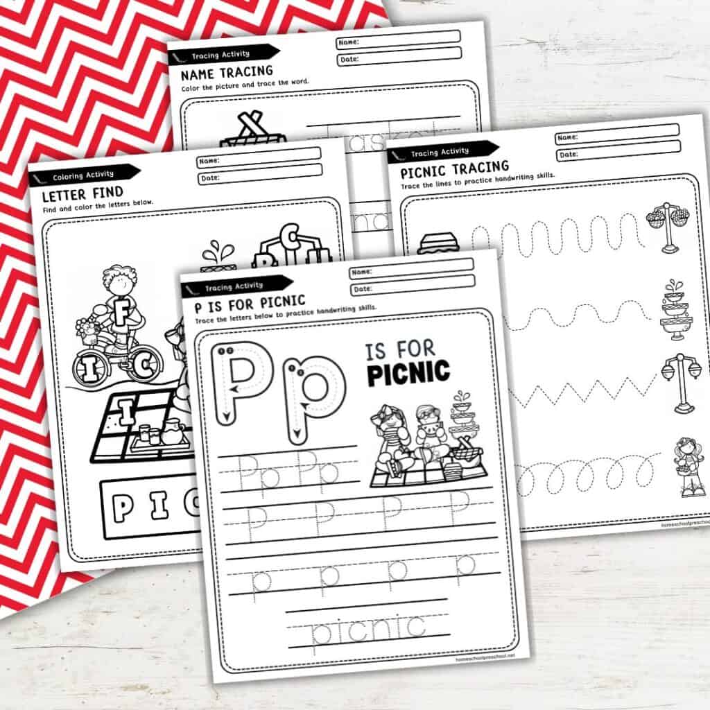 - “P is for Picnic” Letter Tracing – Trace uppercase and lowercase letters.