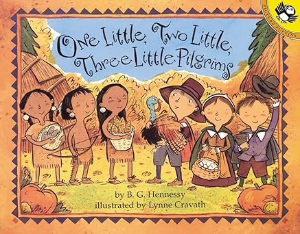 Ten little Pilgrims and ten little Wampanoag boys and girls are getting ready for the harvest feast. In colonial Plymoth, the Pilgrims hunt ducks and geese and dig up turnips and carrots. In a nearby village, the Wampanoag dig for clams, fish for cod, and gather nuts and berries. Finally it’s time for the meal. First everyone gives thanks, then it’s time to eat and celebrate.