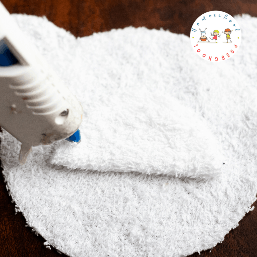 NOTE: If you’d prefer, you can use construction paper for this entire craft instead of a washcloth and craft foam. If you do, you won’t need the hot glue gun. You’ll want glue sticks on hand.