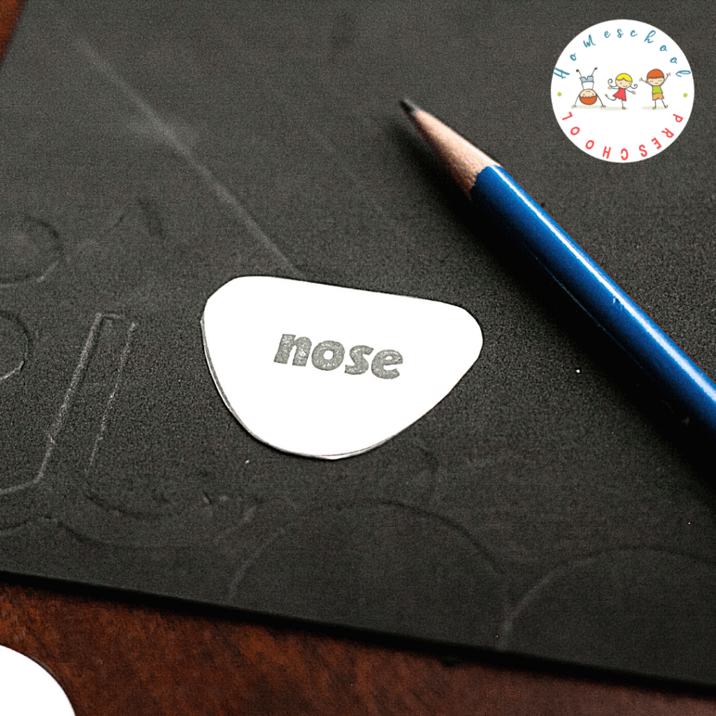 - Trace the inner ear (x2), eye (x2), nose and mouth on the black foam with a pencil; cut all pieces out.