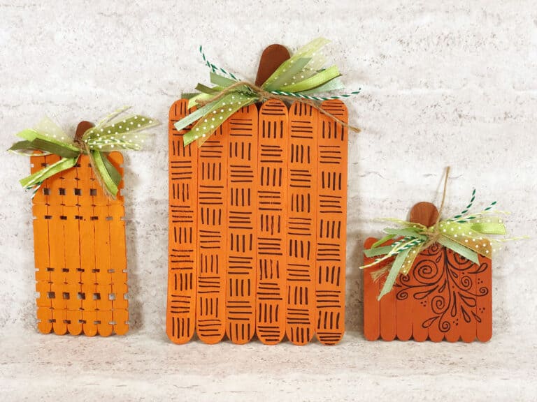 Bring a bit of pumpkin patch charm to your craft table with this Popsicle Stick Pumpkin from Moms and Crafters. Using painted craft sticks, pipe cleaners, and green paper leaves, kids can build their own plump orange pumpkin. It’s a cute and versatile fall craft that works well all season long.