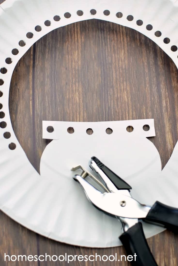 Using the hole punch, punch holes along the inside circle of the plate. It doesn’t matter how many holes you have here.