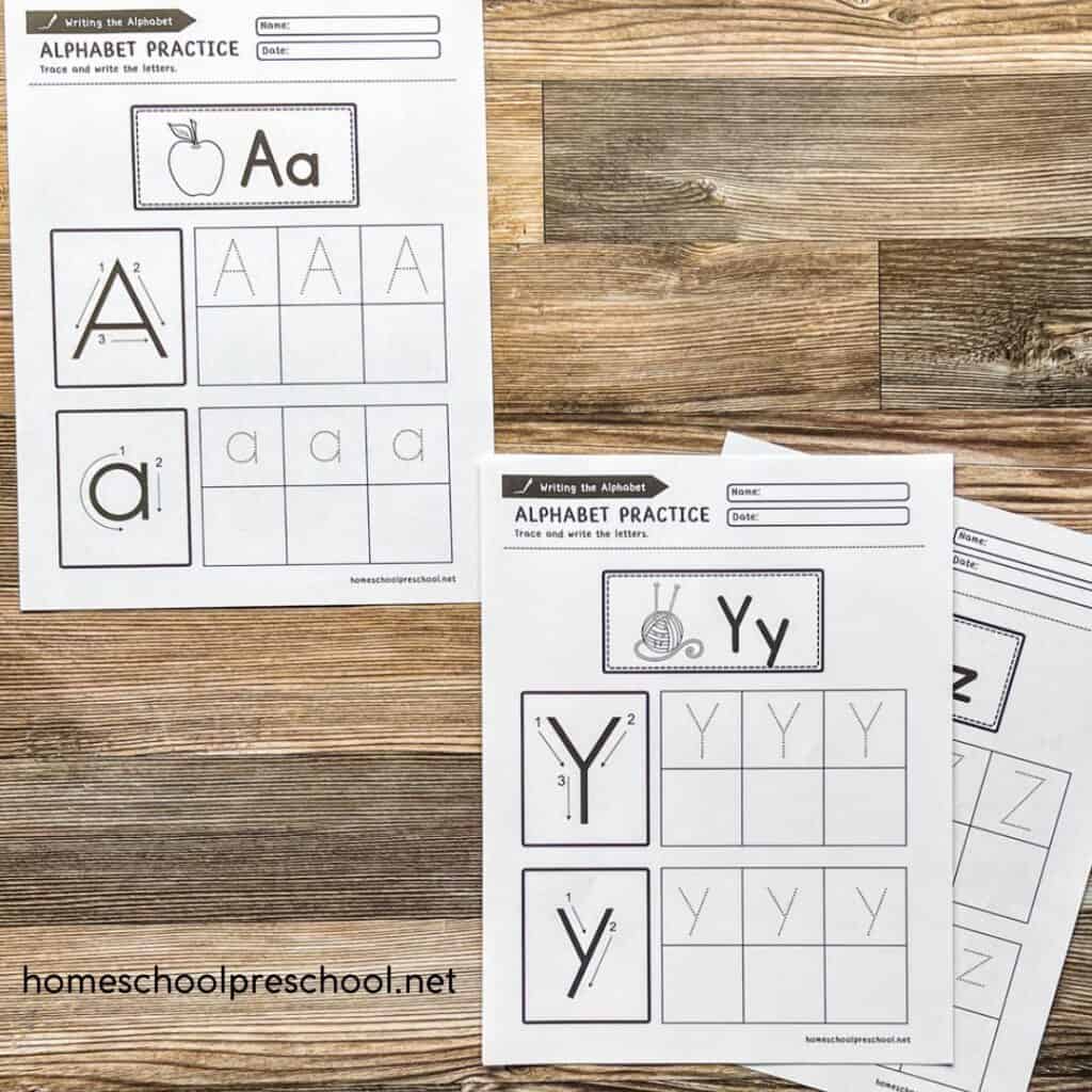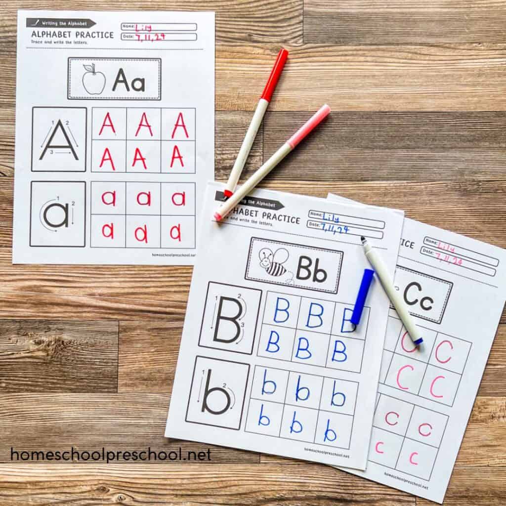 What’s so great about using alphabet printables is that they can cater to all learning styles. From tracing letters to writing them independently, these printables turn learning the alphabet into an engaging adventure for you and your preschooler!