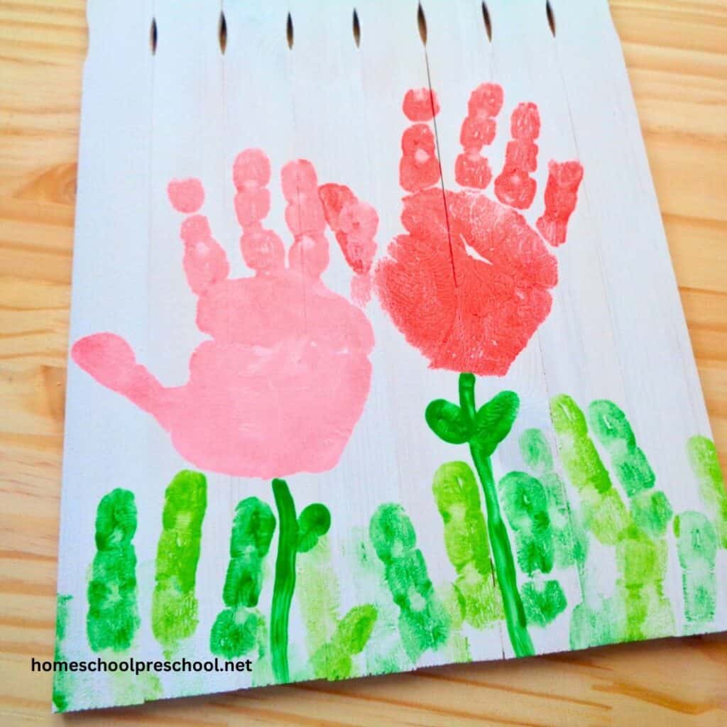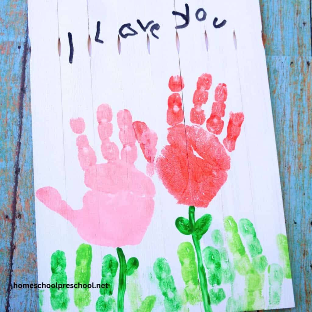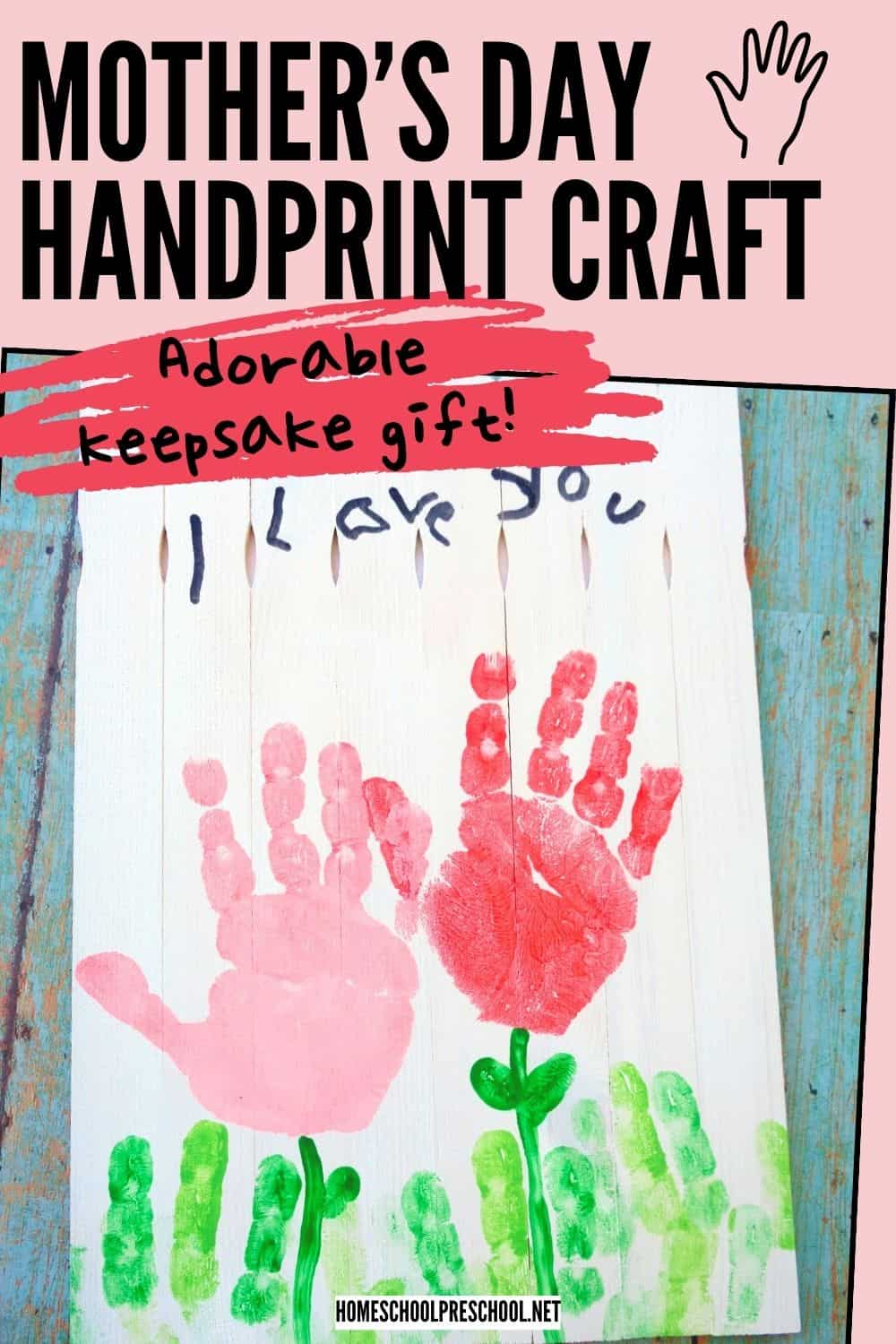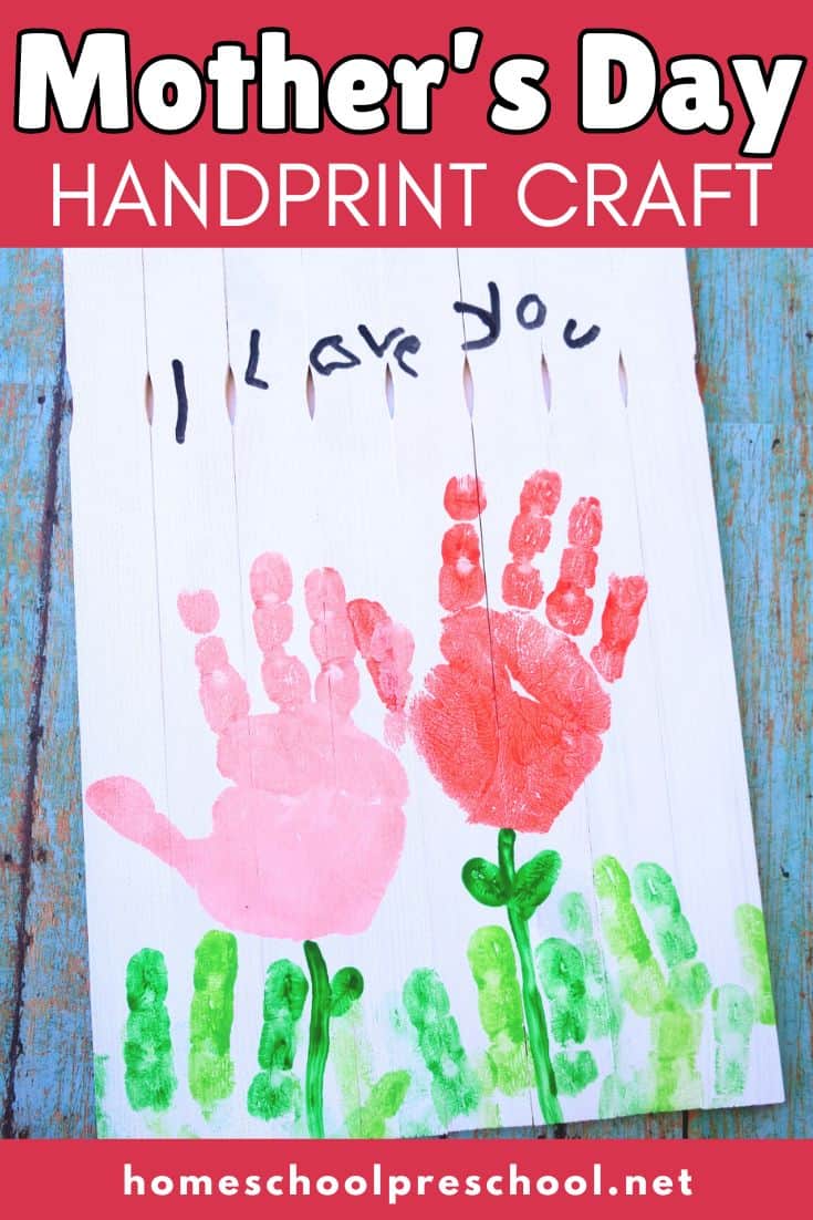 Engage your kids in some fun Mother’s Day activities for preschoolers with this adorable handprint Mothers Day craft that’s sure to become a treasured keepsake for moms, grandmas, and aunts for years to come!