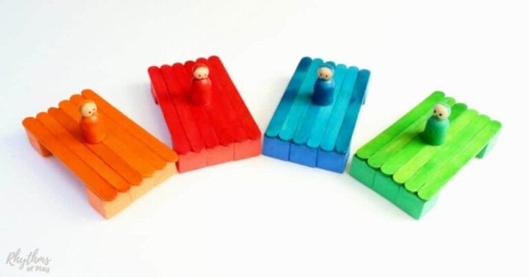Preschoolers will love floating some peg dolls on these colorful craft stick boats. Rhythms of Play