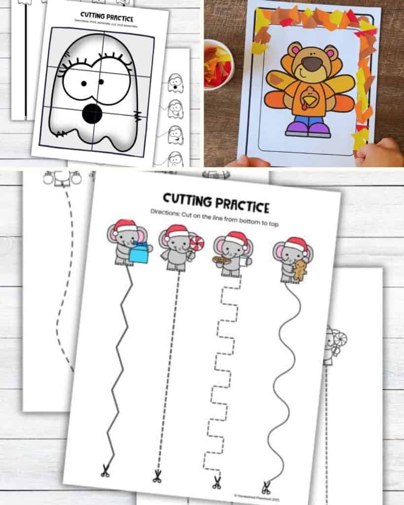These worksheets focus on giving preschoolers hands-on practice with scissors using fun, approachable themes. Cutting helps strengthen hand muscles, improve coordination, and support early writing skills, all through an activity that feels more like play than work. You’ll find a variety of free preschool printables here that can be used at home, in the classroom, or whenever you need a quick skill-building activity.