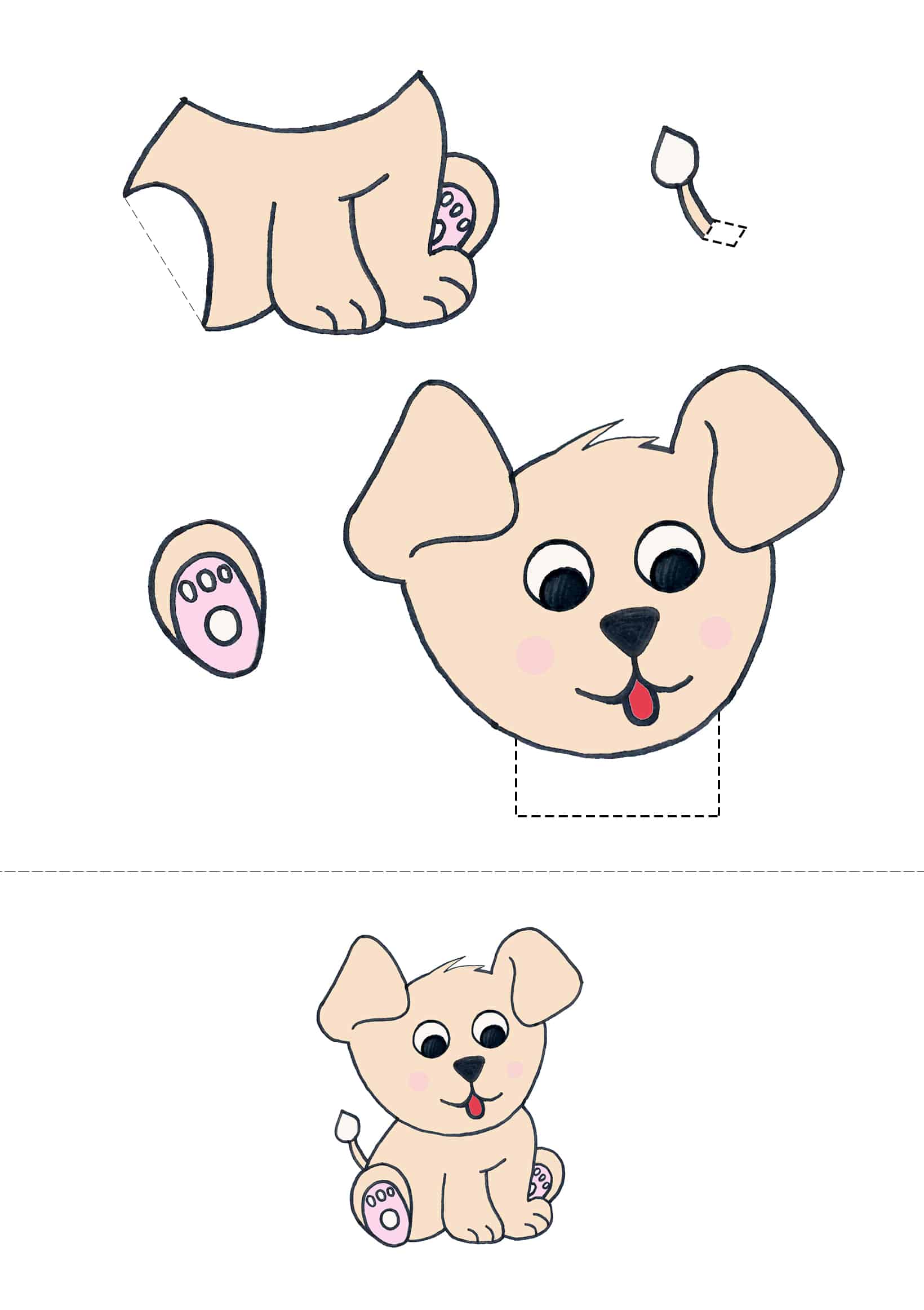 Next, have them use the finished image at the bottom of the template to assemble their puppies.
