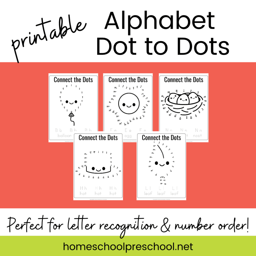 Each free preschool printable is sure to engage little ones with learning and entertainment as they connect the dots to discover an object that starts with each letter of the alphabet.