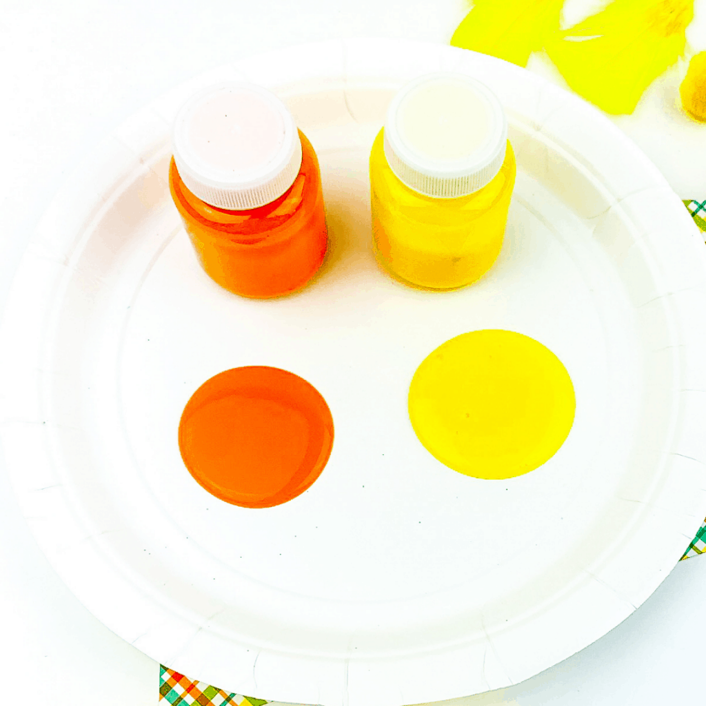 Pour washable paint onto a paper plate. You will want to pour enough for the egg to fit on. Leave space between colors.