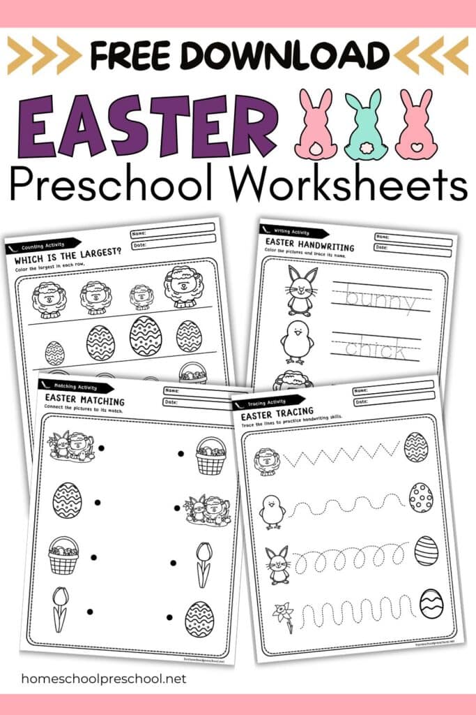 If you’re looking for Easter activities for preschoolers, these worksheets are a great choice. Plus, they pair perfectly with other preschool printables, like Easter crafts or egg hunts.