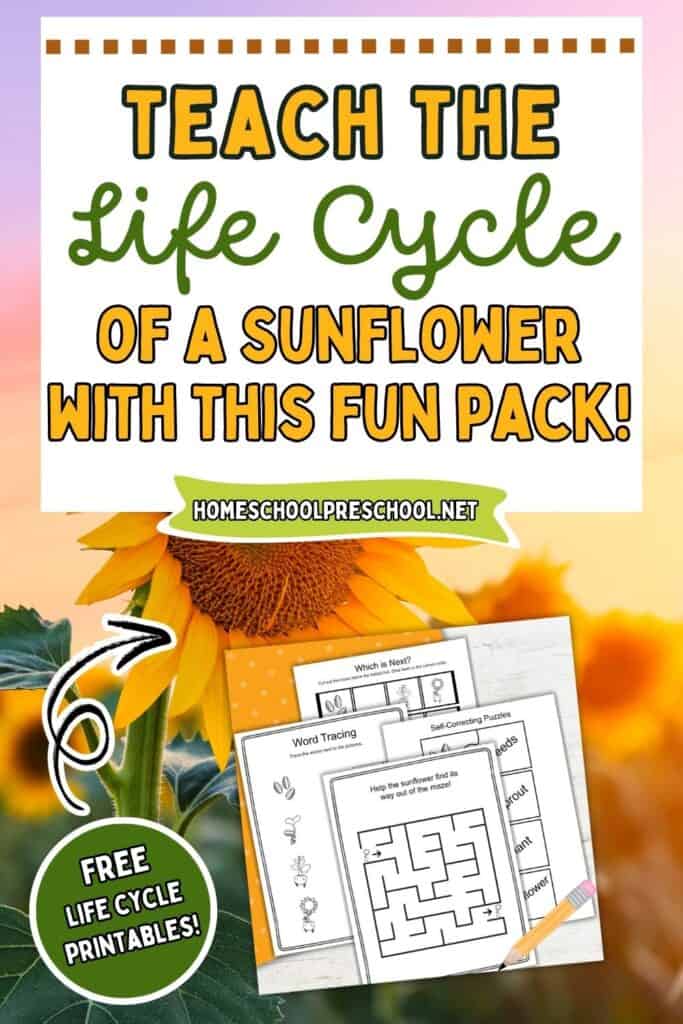 This free Sunflower Life Cycle Activity Pack gives preschoolers multiple ways to explore each stage of the sunflower’s growth.