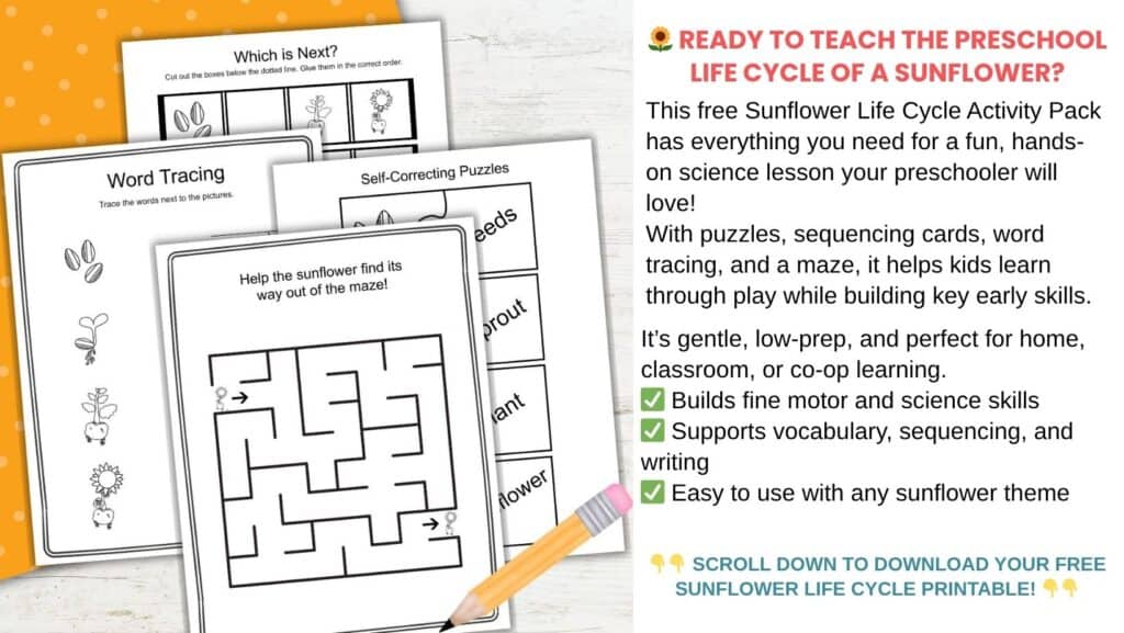 Ready to dive into sunflower life cycle fun? Click the link below to download your free printable activity pack today. It’s quick to print and easy to prep—perfect for home, classroom, or co-op learning settings.