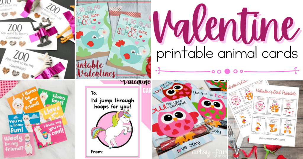 Animal-themed printable Valentine cards for kids just in time for the big day! Print and pass these cards out to friends and family!