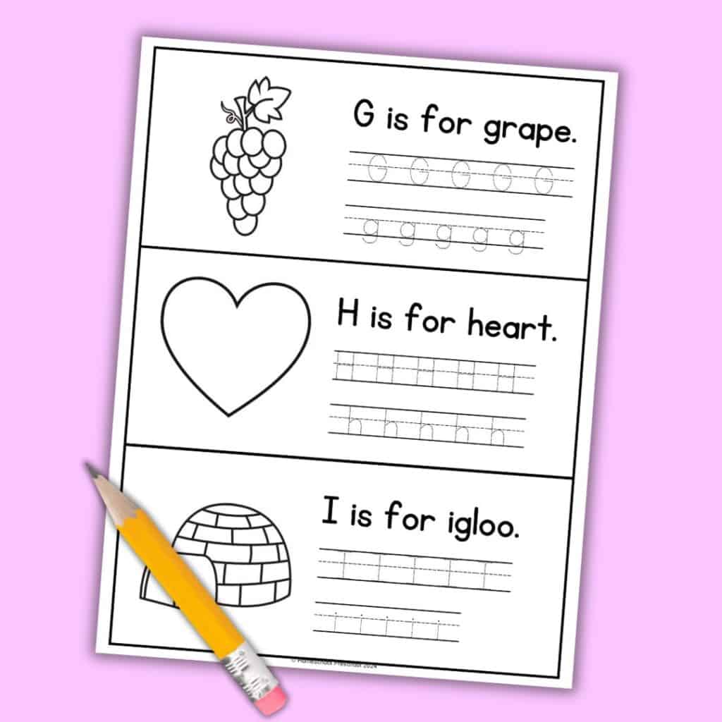 These pages work well when you want focused alphabet practice that stays consistent from letter to letter and lets kids flip through and revisit.