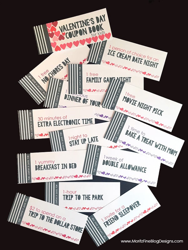 Instead of giving your child a traditional Valentine’s Day card, why not give them coupons this year? These coupons can be traded in for special treats, play dates, or extended bedtimes.