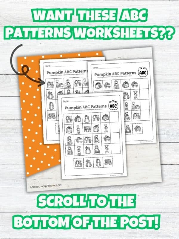 Ready to add some fall fun to your math block? Click the link below to download your free set of pumpkin ABC pattern worksheets. They’re completely no-prep—just print, cut, and let your little learners get to work.