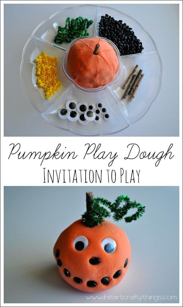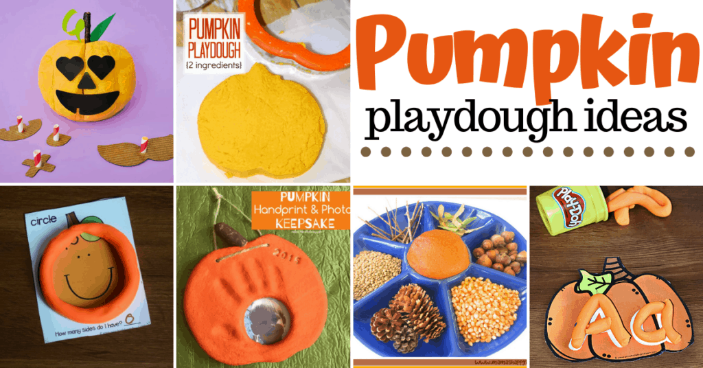 These pumpkin playdough ideas are a great way to have little express their creativity and practice early learning skills while strengthening fine motor muscles as they pinch, roll, and manipulate playdough.
