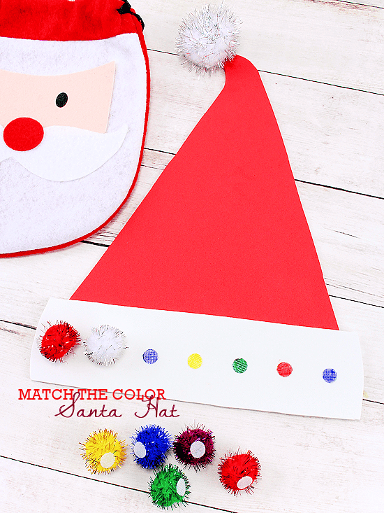 This Santa hat paint chip craft is perfect for little ones. If they can use scissors, let them. If not, precut the paint chips and let them do all the glueing. You can tie a string on them and hang them on the tree, or you can string them together to make a garland.