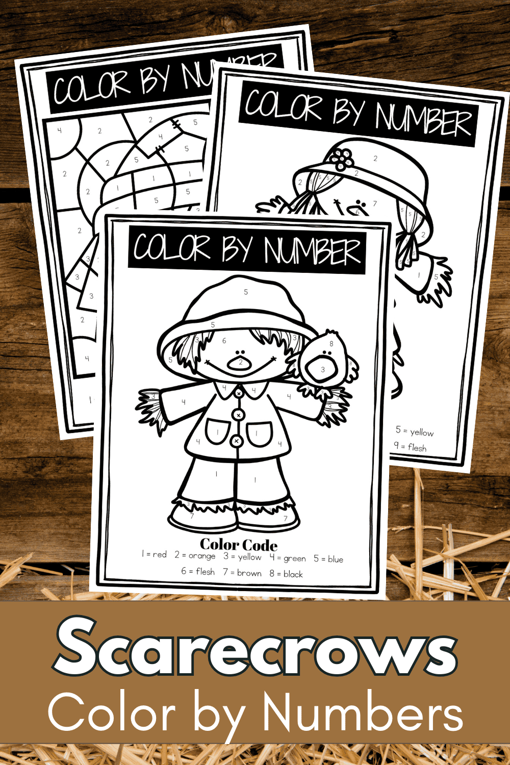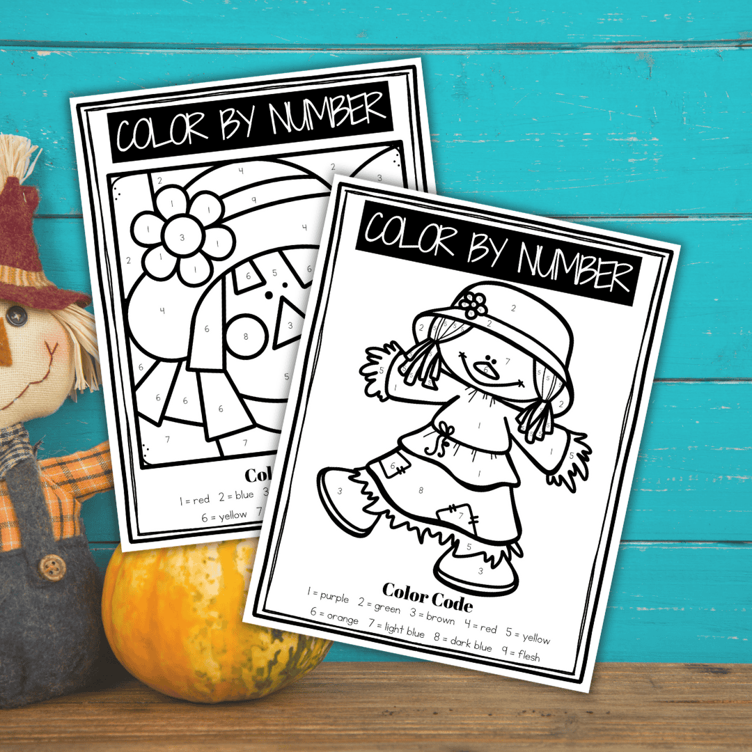 This set of scarecrow color by number worksheets is a great way to have preschoolers practice number recognition through nine.