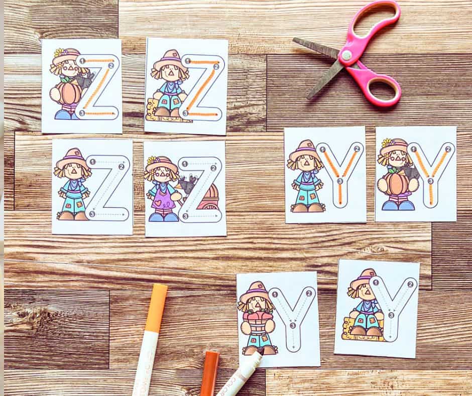 Using scarecrow-themed alphabet cards can make this skill-building fun, allowing children to improve while enjoying the activity. Providing a variety of traceable letters keeps the learning fresh.